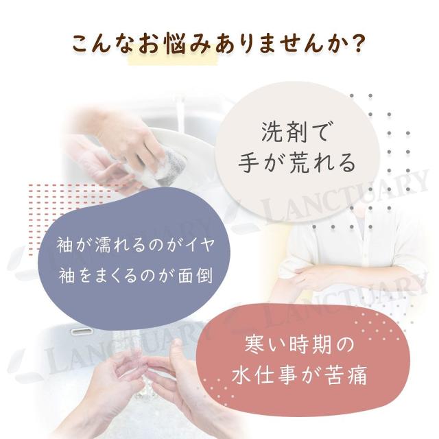 肘まで伸ばせるので、袖をまくらなくても大丈夫!もちろん防水ですので袖を濡らすことなく作業できます。袖絞りタイプでずり下がらず、汚れの入り込みも防げます。寒い時期のガーデニング作業防寒対策にも役立ちます。
