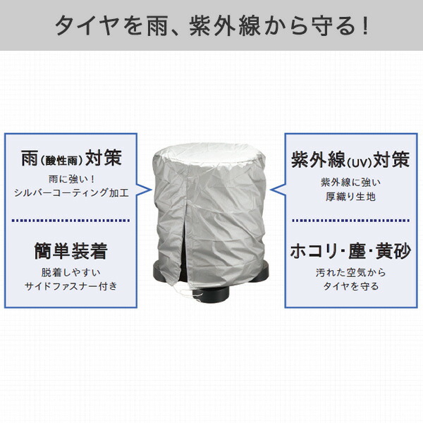 | 商品説明 | ●ベランダやガレージでの収納に便利 ●雨に強いシルバーコーティング加工 ●脱着しやすいサイドファスナー付き ●紫外線に強い厚織り生地 ●ホコリ、塵、黄砂などからタイヤを守る ●収納ポケットにホイールナットを収納可能 ●原産国:パレット/日本、カバー/中国 ●耐荷重:120kg |
