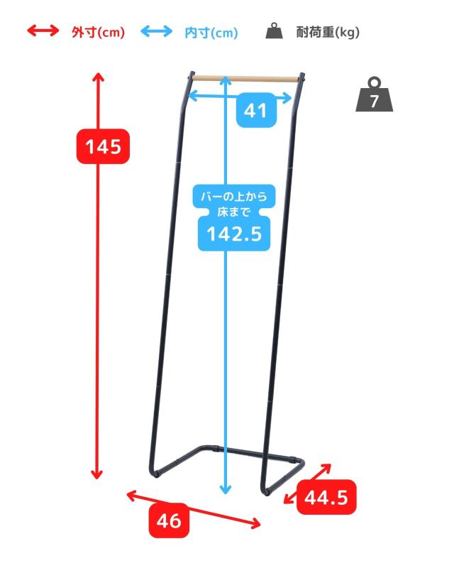 | 本体サイズ | 幅46×奥行44.5×高さ145cm 重量2.5kg |