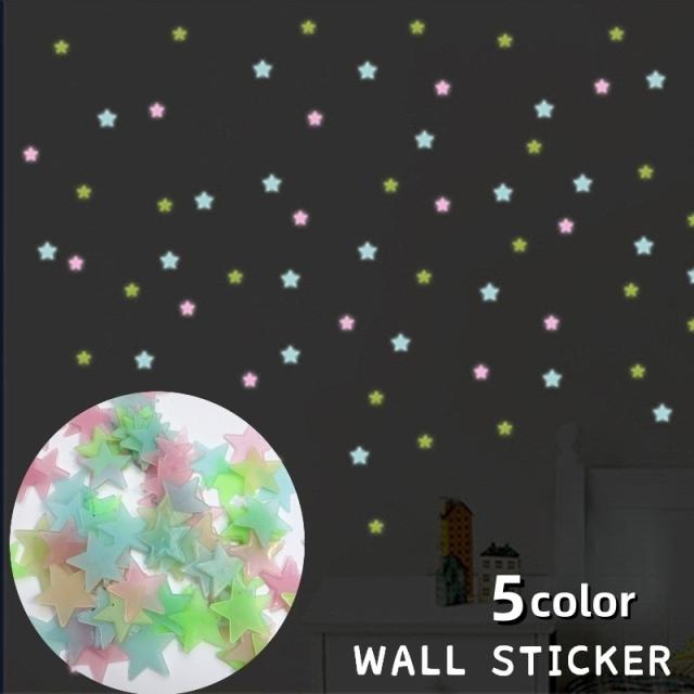 ウォールステッカー 壁ステッカー 100枚入り 光る 蓄光 星 スター 夜空 星空 粘着テープ 壁飾り インテリア雑貨 インテリ