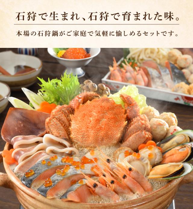 | 石狩が誇る郷土料理のひとつである「石狩鍋」。地元石狩産の秋鮭をメインにたっぷりの海鮮素材を詰め込みました。 味噌ベースの鍋たれに・海鮮具材とお好みのお野菜を一緒に入れて一煮立ちさせお召し上がり下さい。 秋鮭に北海道産の毛がにといくら醤油漬けを加え豪華な石狩鍋をお楽しみ下さい。残りたれにうどんを加え海鮮ダシの利いたスープをお楽しみ下さい。 ※秋鮭の漁獲状況により・北海道産秋鮭に変更する場合がございます。 ※石狩産の秋鮭切身が漁獲量等により、北海道産サケに変更になる場合があります。 |