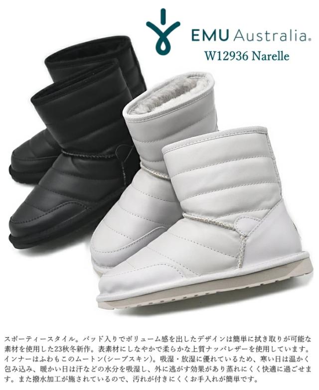 EMU Australia エミュ ムートンブーツ W12936 Narelle 撥水 シープスキン ムートン ブーツ 本革 レザー ショートブーツ ファー ボア 防寒 保温 ブラック レディース 靴