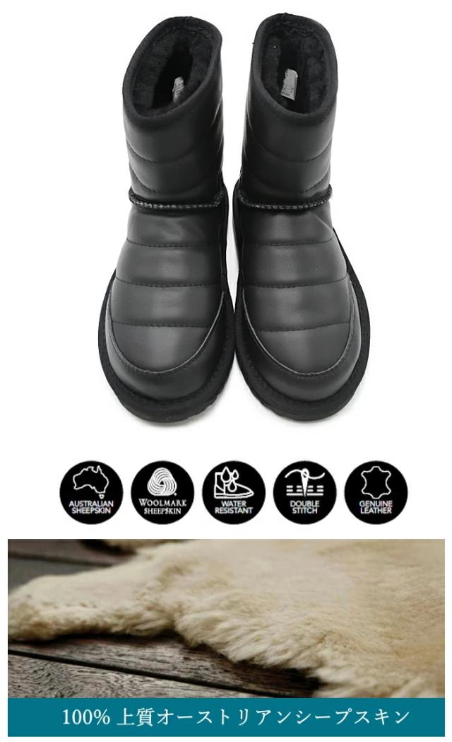 スポーティースタイル。パッド入りでボリューム感を出したデザインは簡単に拭き取りが可能な 素材を使用した23秋冬新作。表素材にしなやかで柔らかな上質ナッパレザーを使用しています。 インナーはふわもこのムートン(シープスキン)。吸湿・放湿に優れているため、寒い日は温かく 包み込み、暖かい日は汗などの水分を吸湿し、外に逃がす効果があり蒸れにくく快適に過ごせま す。また撥水加工が施されているので、汚れが付きにくくお手入れが簡単です。