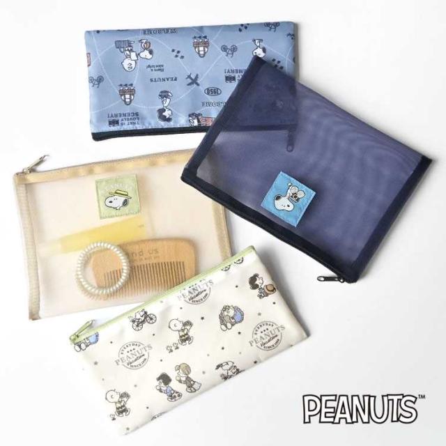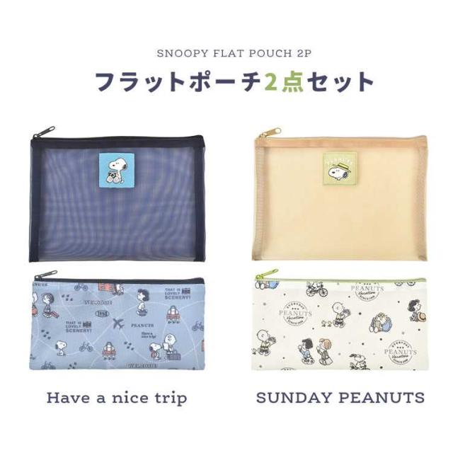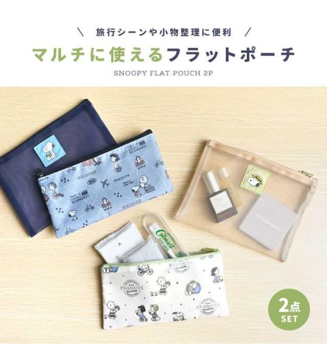 ポーチ 小物入れ スヌーピー ポーチ2点セット SNOOPY 2セット フラットポーチ トラベルポーチ キャラクター スクエアポーチ 仕分け かわいい おしゃれ 旅行 整理 メッシュポーチ PEANUTS ネイビー ベージュ 女子 男子 女性 男性 学生 高校生 大人 キッズ 子供 グッズ 人気