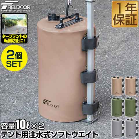 FIELDOOR テント用 ウエイト 10L×2個セット 折りたたみ 注水式 最大10kg おもり テントウエイト 重り 錘 おもり タンク ウェイト 固定 テント用注水式ソフトウエイト 10L ウォーターウエイト タープ用 テント設営 イベント用 1年保証 送料無料