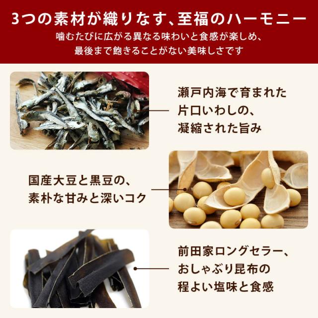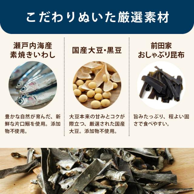 前田家 素焼きいわし大豆昆布ミックス 160g 保存料不使用 食べる煮干し 国産大豆 おしゃぶり昆布 瀬戸内海産 片口鰯 カルシウム DHA EPA 小魚 チャック付き まるごと カタクチイワシ 煮干し 昆布 送料無料 MAEDAYA