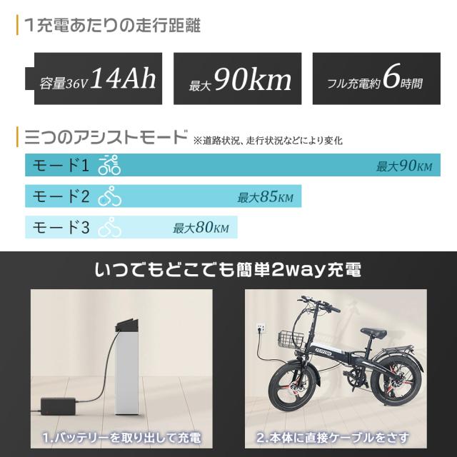 - フル充電まで5-7時間、最大90kmを走行でき、取り外すことも可能で充電すごく便利になります。(走行距離は道路状況などにより変化)