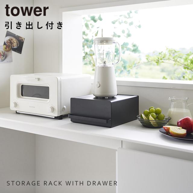 キッチン家電下ラック キッチン タワー tower 山崎実業 引き出し付きキッチン家電下ラック タワー