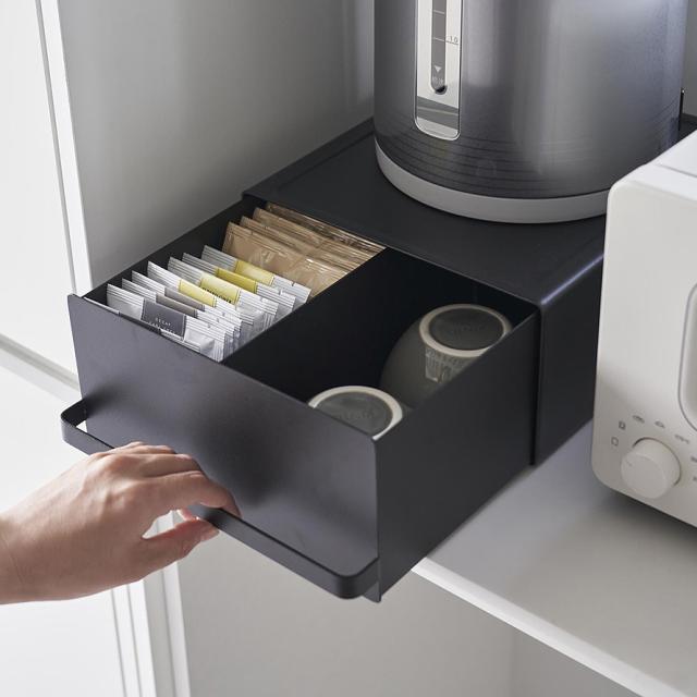 引き出しの中にシュガーや紅茶パックなどを一括収納できます。