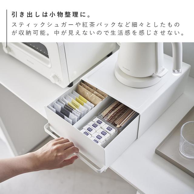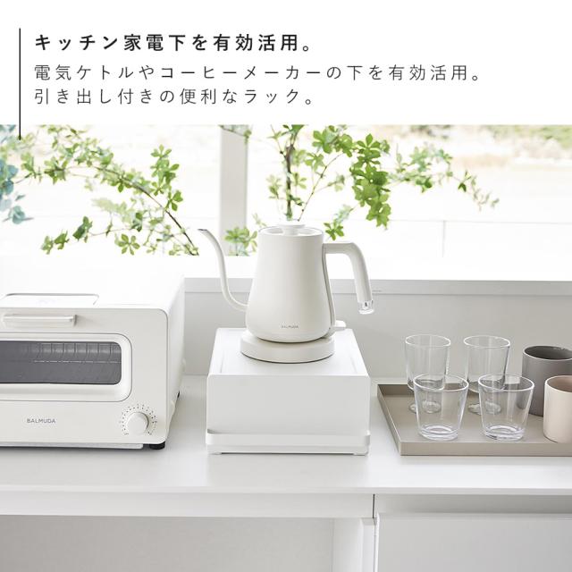 電気ケトルやコーヒーメーカーの下を有効活用!引き出し付きなので小物も収納できるキッチン家電下ラック。