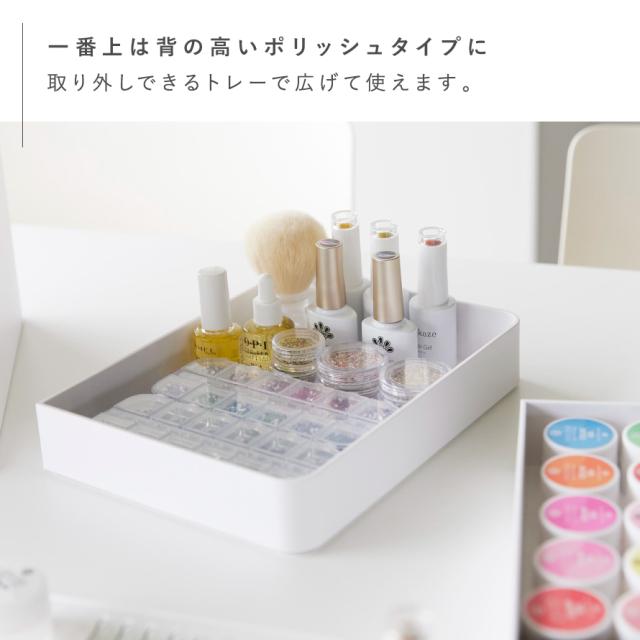 いちばん上のトレーに背の高いポリッシュタイプのジェルネイルが収納できます。