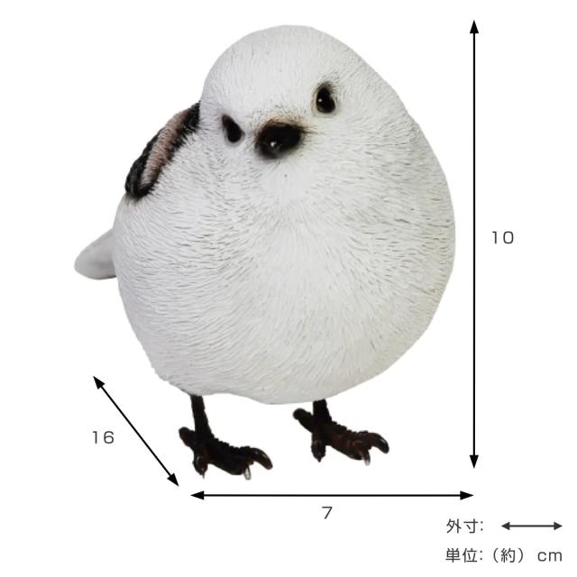 本物みたいな造形のリアルなシマエナガのオブジェです。真っ白な羽毛に包まれたお団子のような小さな体につぶらな瞳が印象的です。お部屋のインテリアとしてデスクに置いたり、植物と並べて飾るのも素敵です。