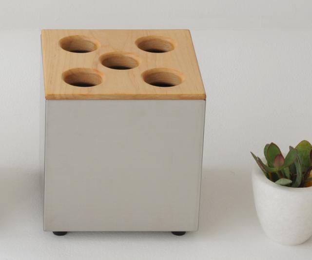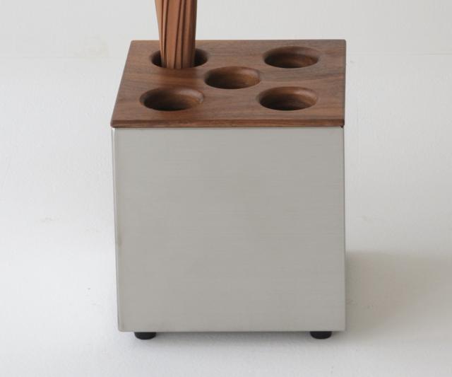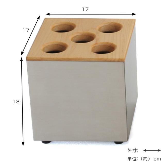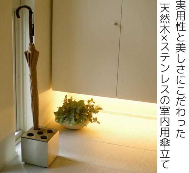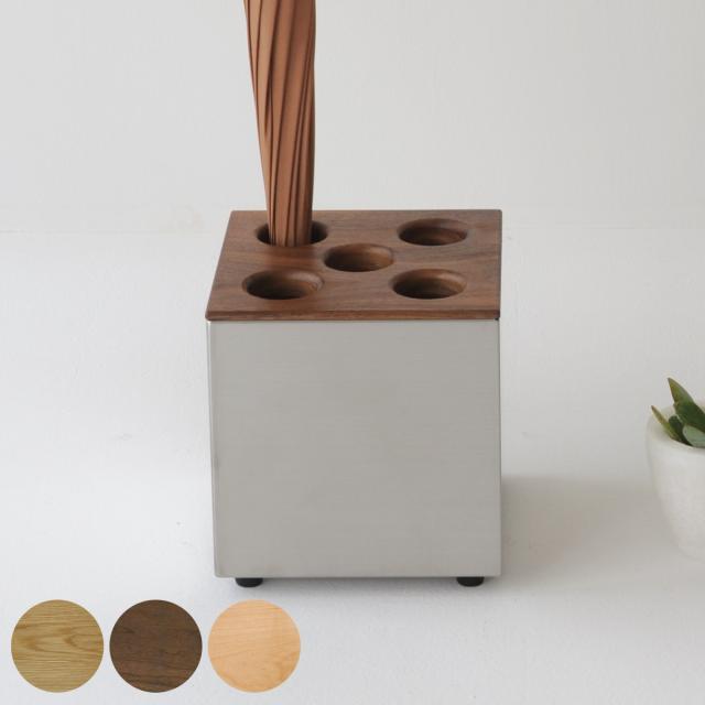 傘立て CUBE 5穴タイプ 天然木 ステンレス ( アンブレラスタンド スリム傘立て 傘スタンド 玄関 傘 収納 玄関収納 ステンレス製 木製 北欧 傘立 スタイリッシュ シルバー 傘収納 シンプル おしゃれ 省スペース 傘入れ )