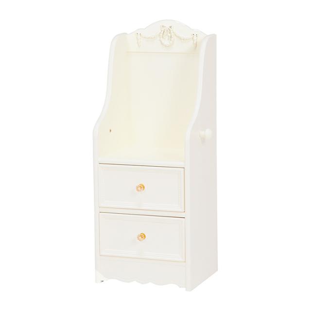 収納ラック かわいい ランドセルラック RCC-1856WH 引出し付き 引出し2杯 小物収納 リボンモチーフ アンティーク風 姫系 新入生 新入学 教科書 学用品 木製
