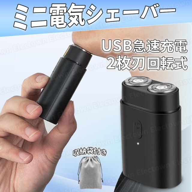 「クーポン配布中」「即納」メンズシェーバー ミニ電気シェーバー 髭剃り ひげそり 2枚刃 水洗い可能 電動シェーバー 深剃り 回転式 乾湿両用 USB充電式 お風呂剃り対応 携帯髭剃り男性用シェーバー 携帯用 旅行用 出張用 父の日 プレゼント