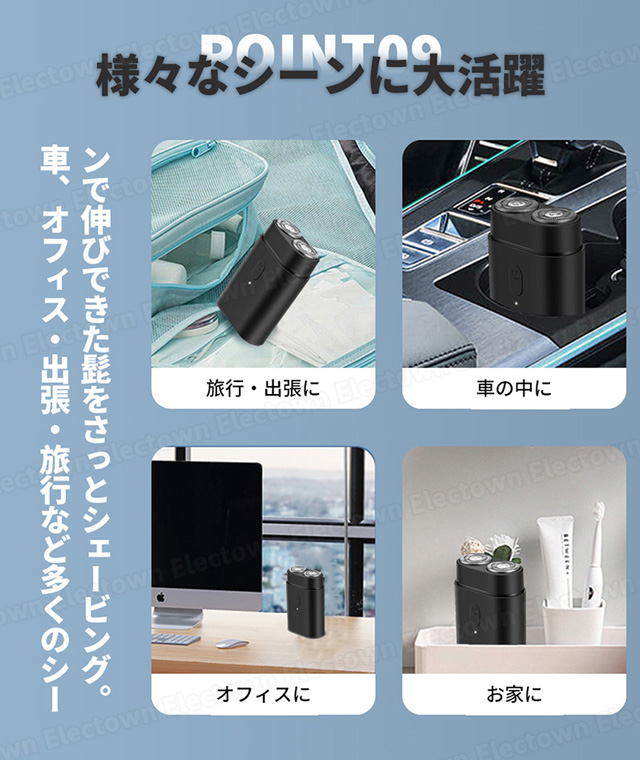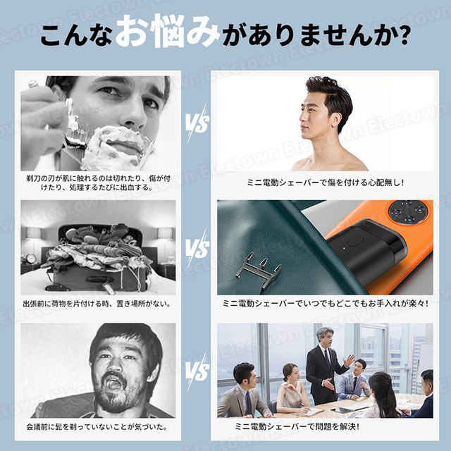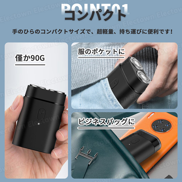 【コンパクトで持ち運び便利】小型シェーバーはコンパクトで軽量、持ち運びに便利で場所をとりません。服のポケットやビジネスバッグ、デスク、車の収納ボックスなどに入れることができ、オフィス・出張・旅行など多くのシーンで髭剃りの必要性を満たすことができます。