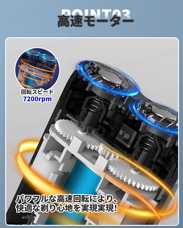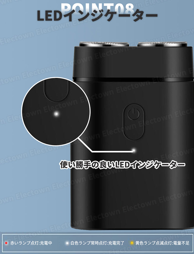 【LEDディスプレイライト】電気シェーバーは、ツインモーターが高速回転する特殊強力モーターを搭載し、素早く自動でヒゲを除去します。内蔵のLEDインジケーターは、電池残量をリアルタイムで表示します。電池が満タンのときはインジケーターが白く点灯します、電池残量が少なくなるとインジケーターが赤く点灯します。