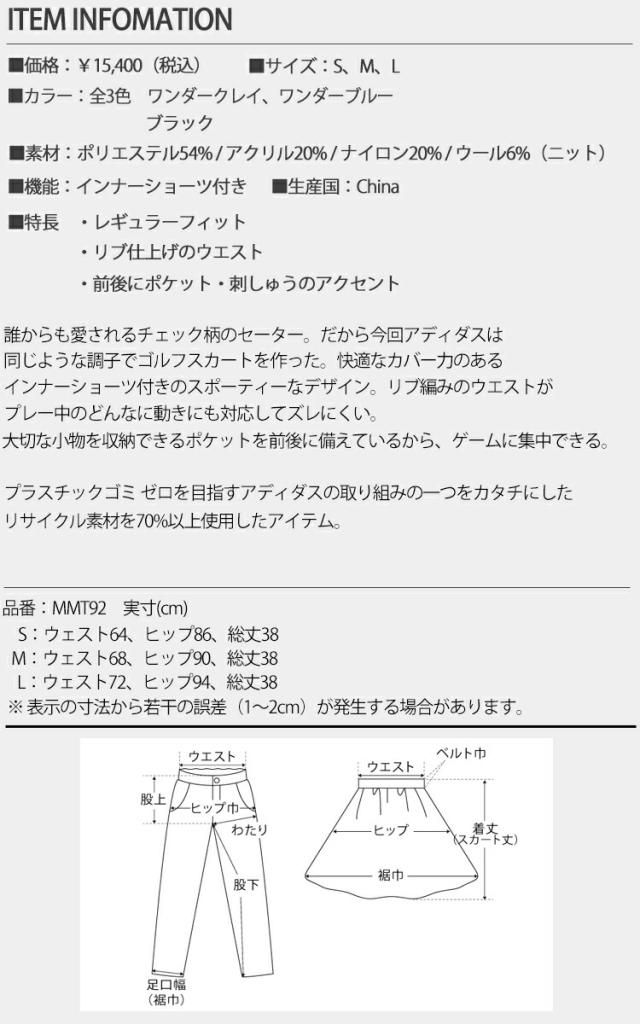 アディダス ゴルフ タータンチェック ニットスカート レディース ゴルフ ウェア 「Adidas Golf MMT92」 インナーパンツ一体型