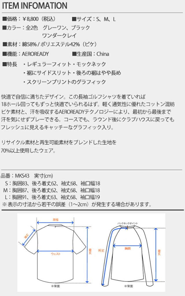 | 特長 | ・レギュラーフィット ・モックネック ・AEROREADY ・裾にサイドスリット ・後ろの裾はやや長め ・スクリーンプリントのグラフィック |