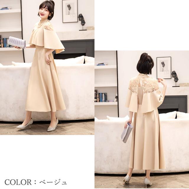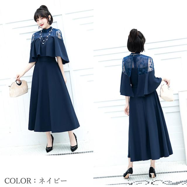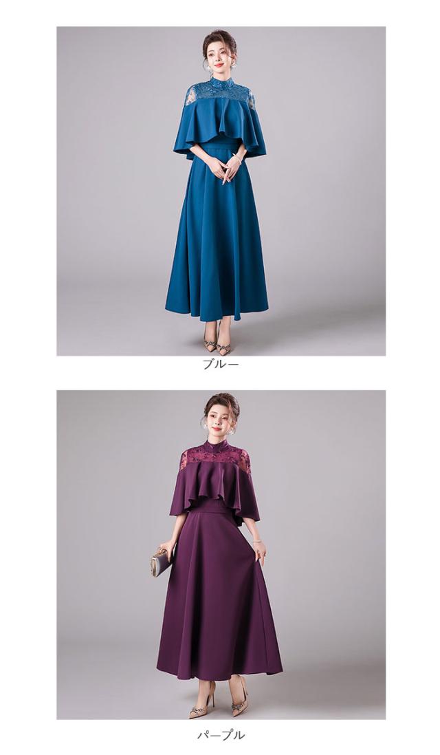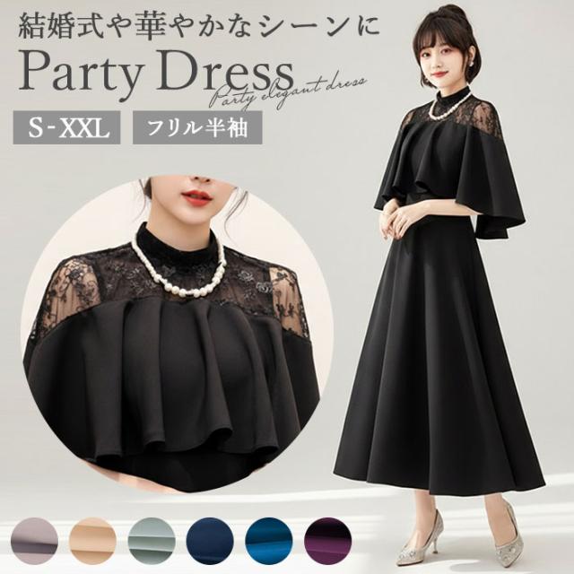 パーティ ドレスワンピース 通販 ロングワンピース フォーマルワンピース ワンピース パーティーワンピース フリル半そで セレモニーワンピース イブニングウェア 袖あり レディース