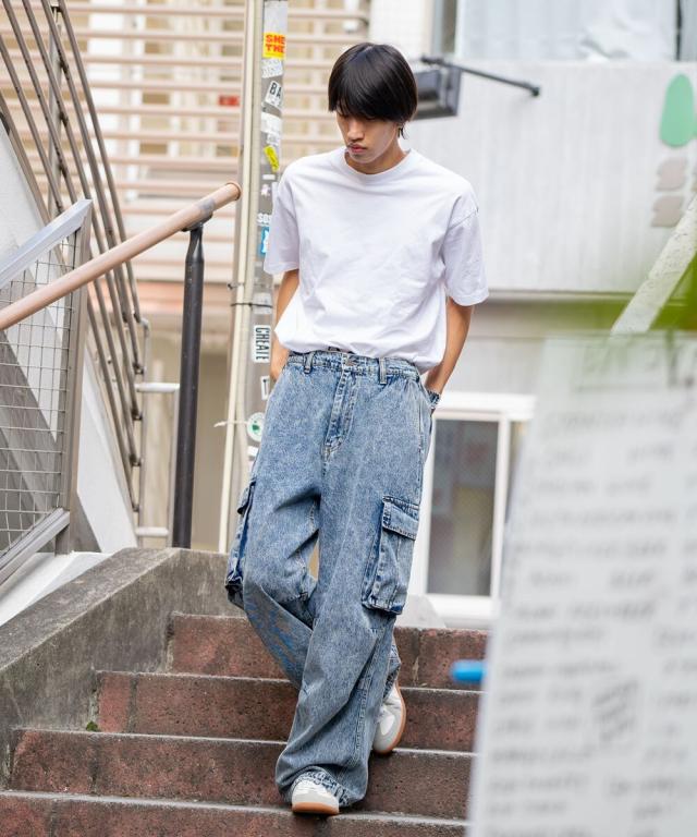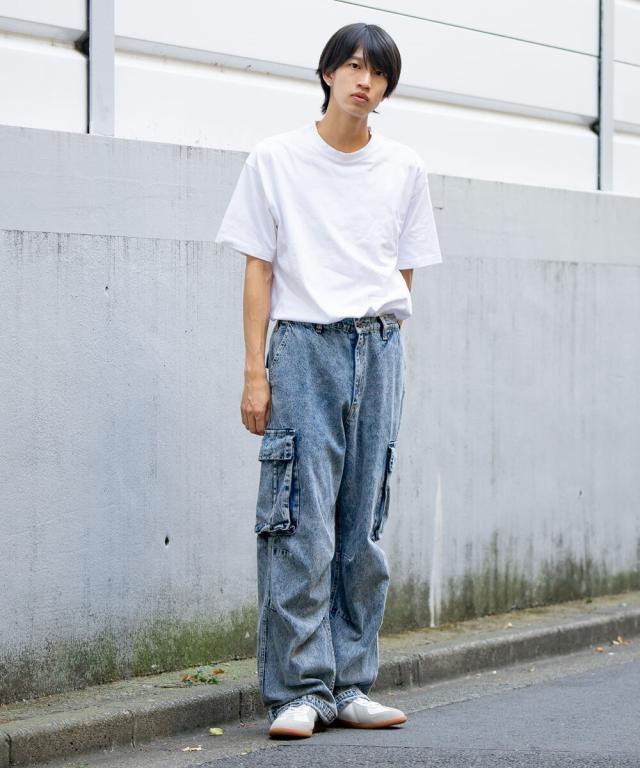 ◆ルーズフィットでストリートコーデにおすすめのデニムカーゴパンツ。