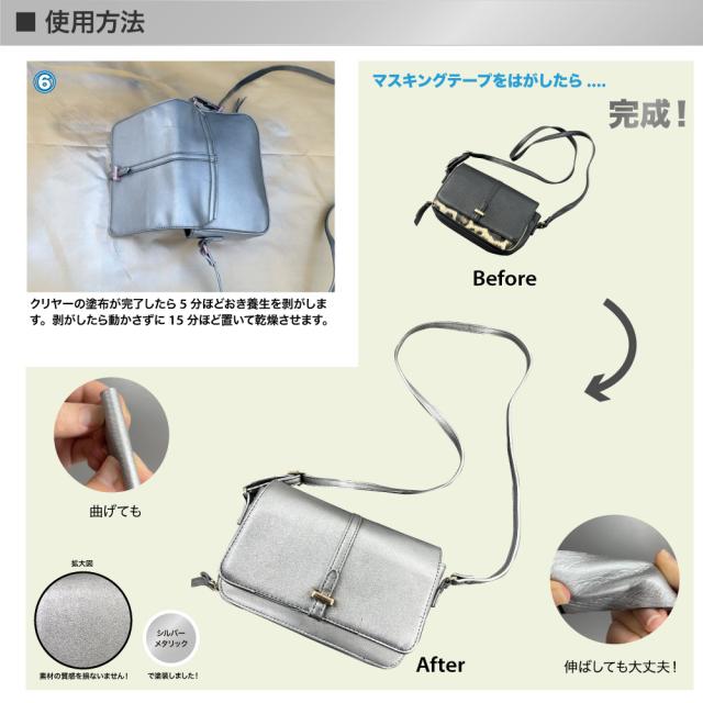 ・布製品に塗装する場合、塗料の性質上、メタリック顔料が浸透せず、白く色が薄く見える場合があります。