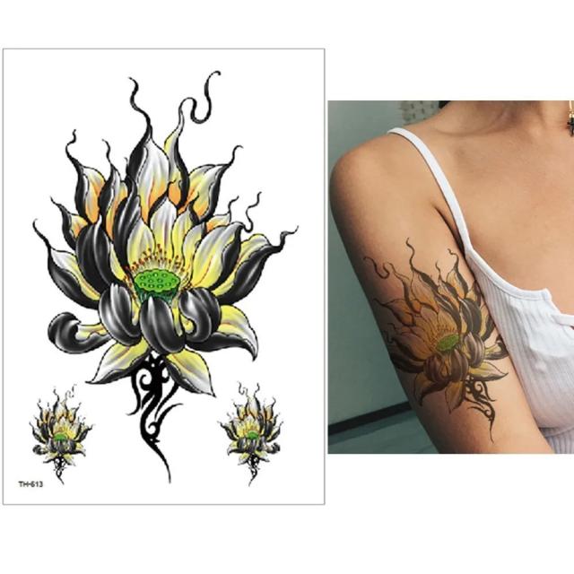大きいサイズの蓮の花をデザインした水で貼るフェイクタトゥーステッカー。