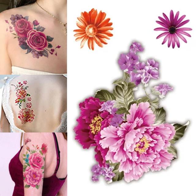 大きいサイズの紫色の花をデザインした水で貼るフェイクタトゥーステッカー。