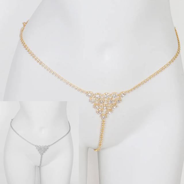 トライアングル クリスタルビキニTバックボトムボディチェーン クサリ 三角形 下着 アンダー 水着の下 パンツ 洋服 水着 鎖 ジルコニア ラインストーン ウエストチェーン ティーバック ベリーダンス レディース ベリーチェーン 胸 首 ゴールドチェーン シルバーチェーン
