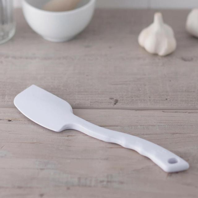 すくいやすい形を追求した、しなやかで丈夫なシリコーンベラです。ボウルの曲面にぴったり沿うので、最後まできれいにすくえます。ヘラ上部の角を使えば、保存ビンの肩の部分に残ったジャムなどもきれいにさらえることができます。