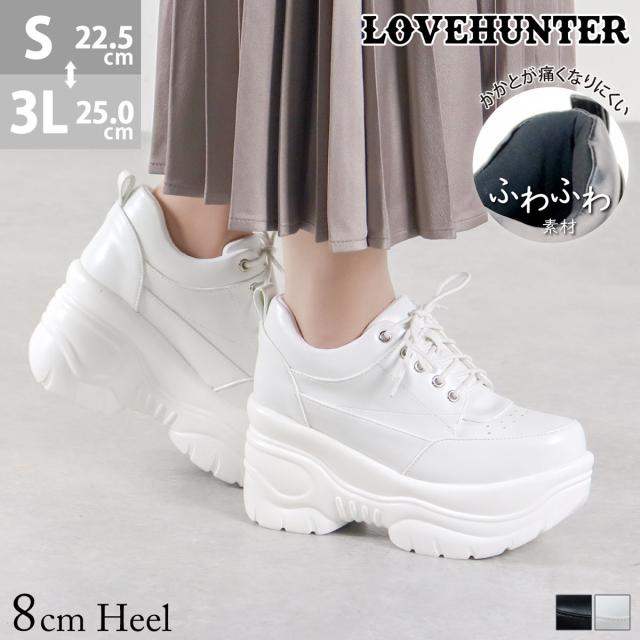 スニーカーブーツ レースアップ ショート丈 レディース 厚底 8cmヒール 美脚 No.1652 22.5-25.0cm 黒 白 LOVEHUNTER ラブハンター