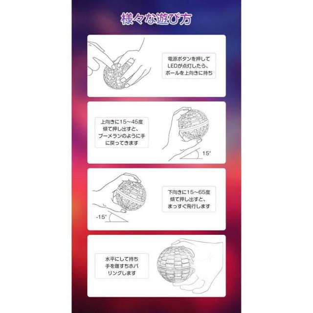 フライングボール光るおもちゃ子供空飛ぶボール回るLEDライト光るボール飛行浮遊知育ドローン充電フライングボールジャイロスピナーブーメラン