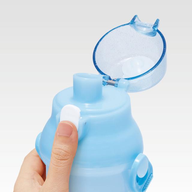 水筒の蓋はボタンを押すだけで開けることができるワンタッチ式です。飲み終わったら蓋をカチッと閉めるだけなので、小さなお子様でも簡単に開閉できます。