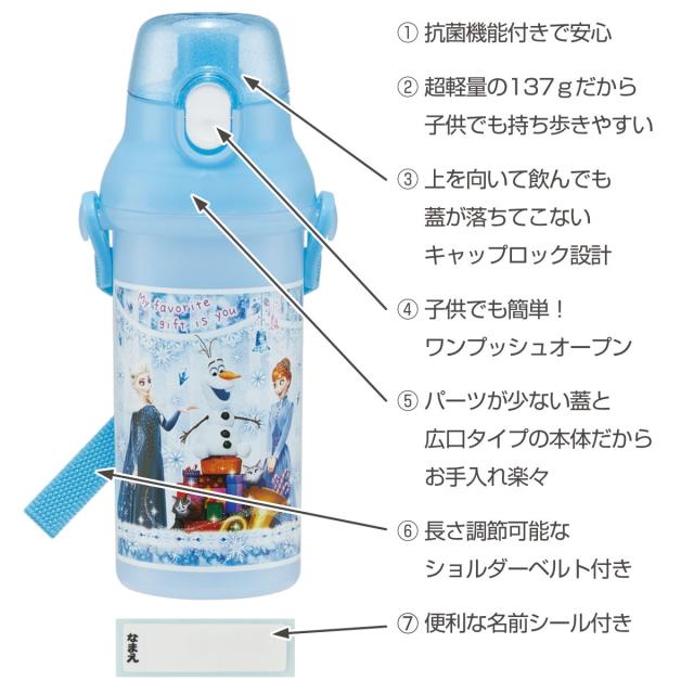 水筒 480ml 抗菌直飲プラボトル アナと雪の女王24 ( アナと雪の女王 子供用 抗菌 プラスチック製 ダイレクトボトル 直飲み ワンタッチ 日本製 抗菌加工 AG 銀 ショルダーベルト付き 広口 軽量 ボトル ワンプッシュ )
