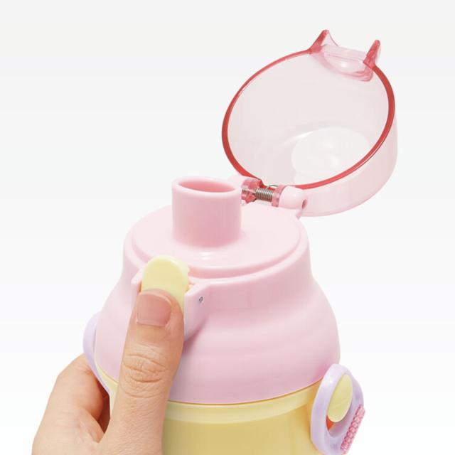 水筒の蓋はボタンを押すだけで開けることができるワンタッチ式です。飲み終わったら蓋をカチッと閉めるだけなので、小さなお子様でも簡単に開閉できます。