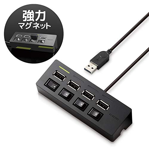 エレコム USBハブ 2.0 バスパワー 4ポート 100cm 個別スイッチ付 機能主義 MacBook/Surface Pro/Chromebook他 ノートPC Nintendo Switch対応 ブラック U2H-TZS428BXBK