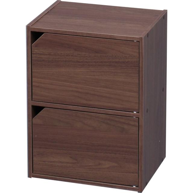 ◆商品名:アイリスオーヤマ カラーボックス 収納ボックス 本棚 2段 扉付き 幅36.6×奥行29×高さ49.4cm ウォールナットブラウン モジュールボック<br>単身者・学生など一人暮らしに最適な、シンプルなデザインの収納ボックスです。
