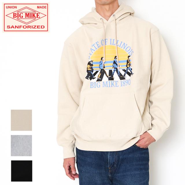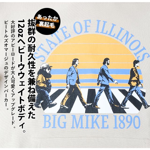 BIG MIKE パーカー スウェット プルオーバー メンズ ビッグマイク ニューアビーロード パーカー 102338900 ビックマイク 長袖 プリント メンズ 秋 冬 裏起毛 グレー ブラック ブランド トップス フード プレゼント