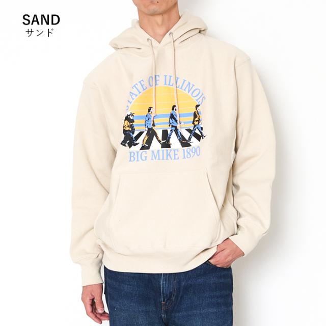 BIG MIKE ビックマイク メンズ 長袖 ビッグマイク ニューアビーロード プルオーバーパーカー パーカー 長袖 プリント 裏起毛 グレー ブラック ブランド トップス フード プレゼント シンプル ストリート プリントt カットソー シンプル カジュアル タウンユース おしゃれ 大人 紳士 男性 ■Situation■