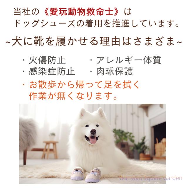靴・靴下はワンちゃんの肉球、足の怪我やアレルギーによるかゆみ等を保護し、引っ掻きによる怪我の悪化や舐めたりして炎症が広がるのを予防できます。