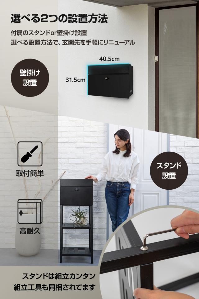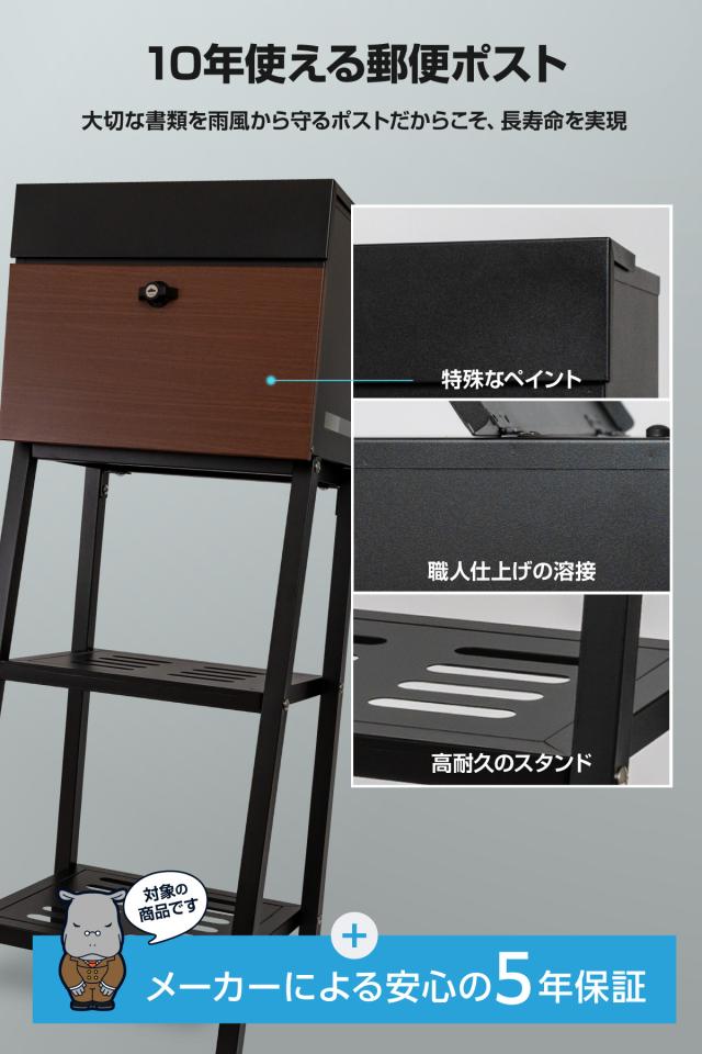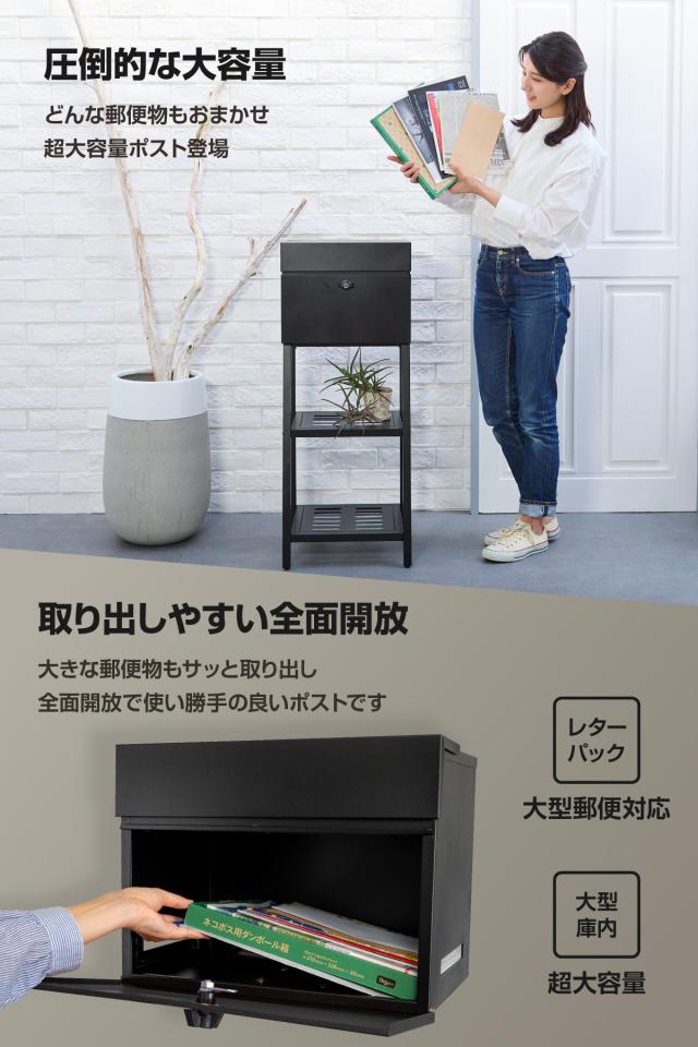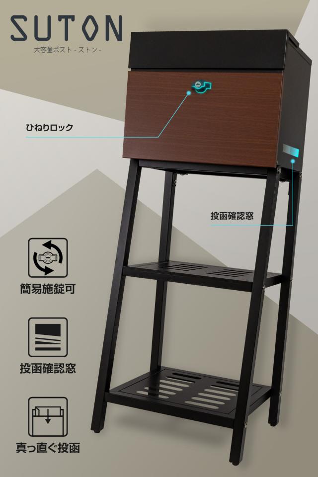カバポスト 郵便ポスト ポストスタンド 置き型 大型 鍵付 スタンドポスト ストン 黒 木目調 ストンセット