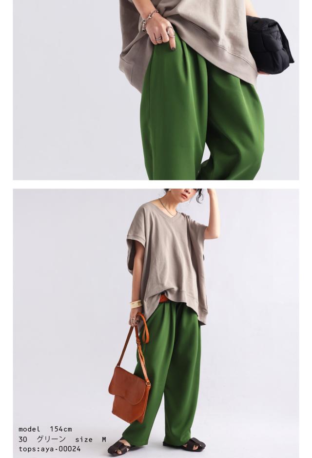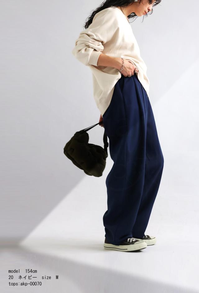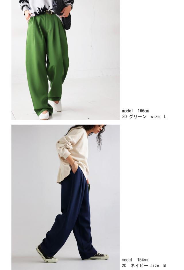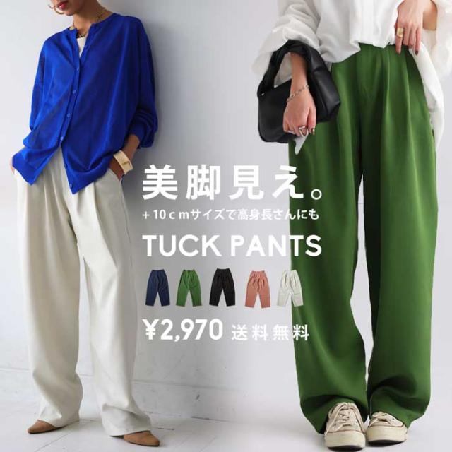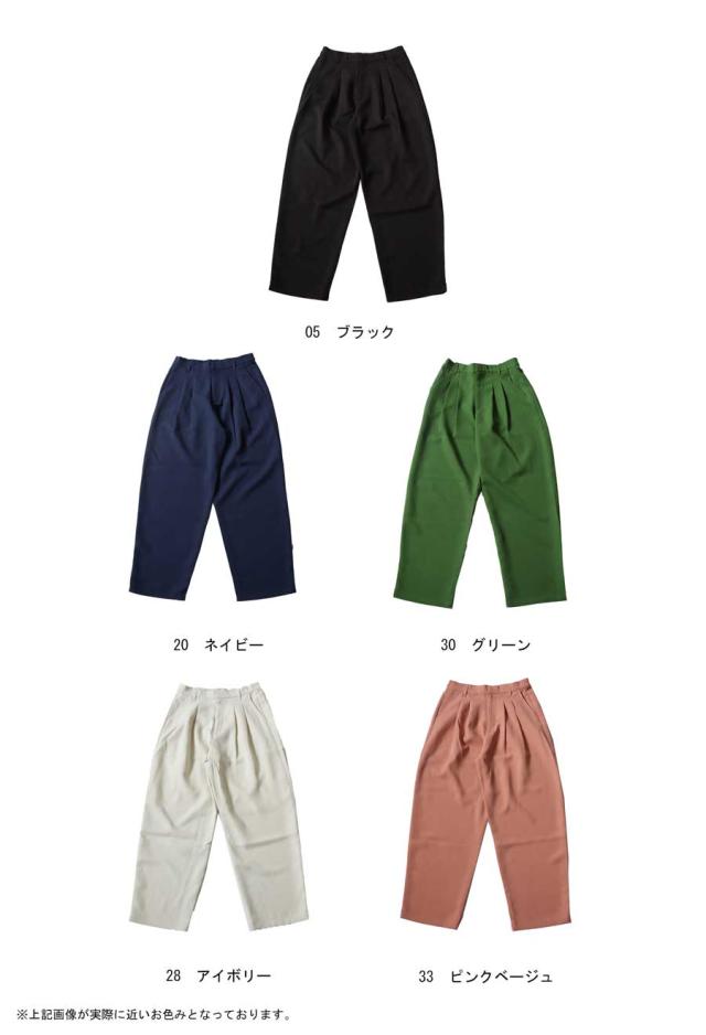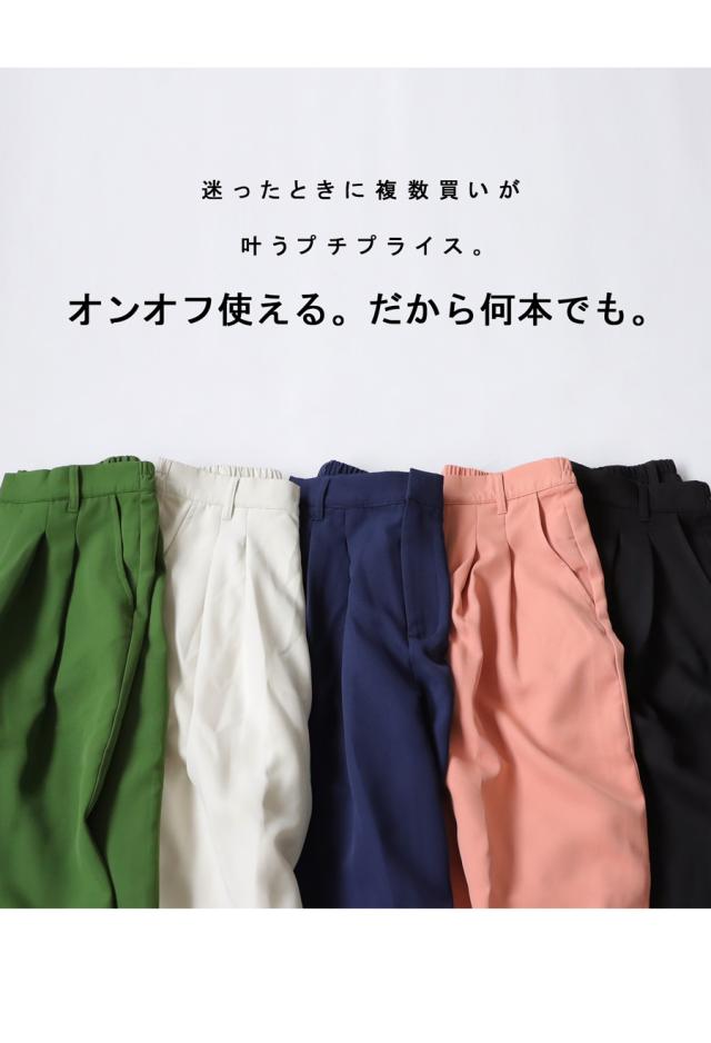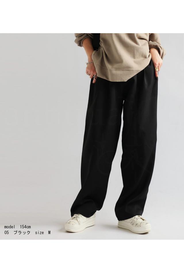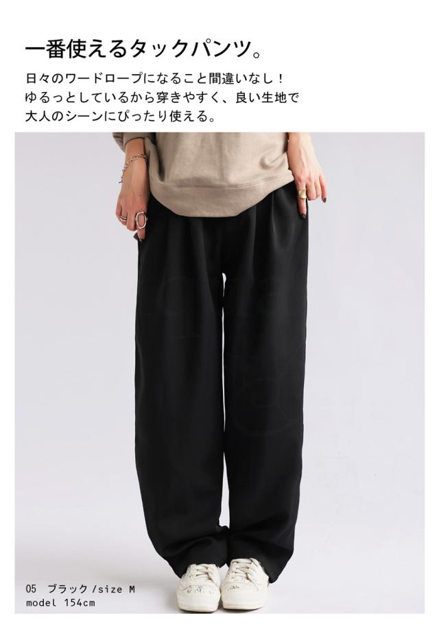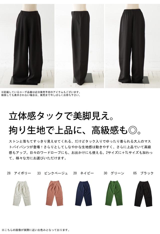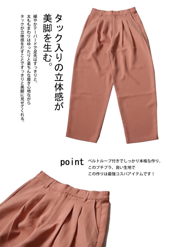 ay-00051 無地 シンプル きれいめ 高級感 上品 タックパンツ タック テーパード 長ズボン スラックス ゆったり 伸縮 ストレッチ 前フラット 後ろゴム 美脚 通勤 オフィス