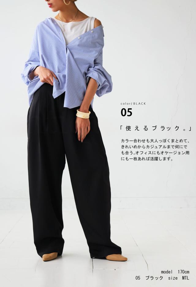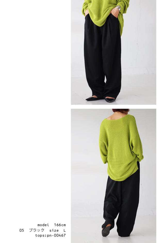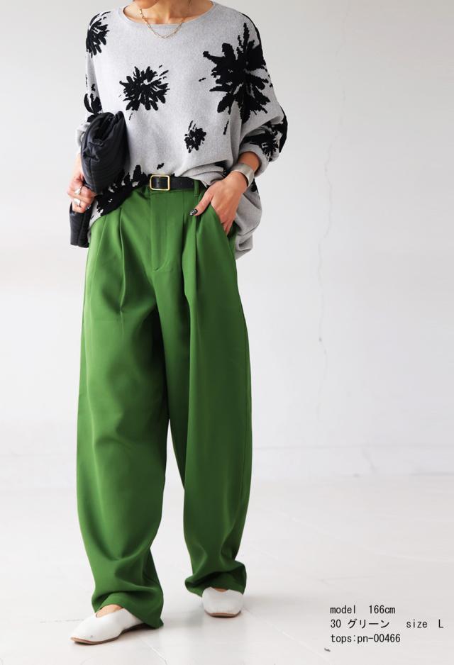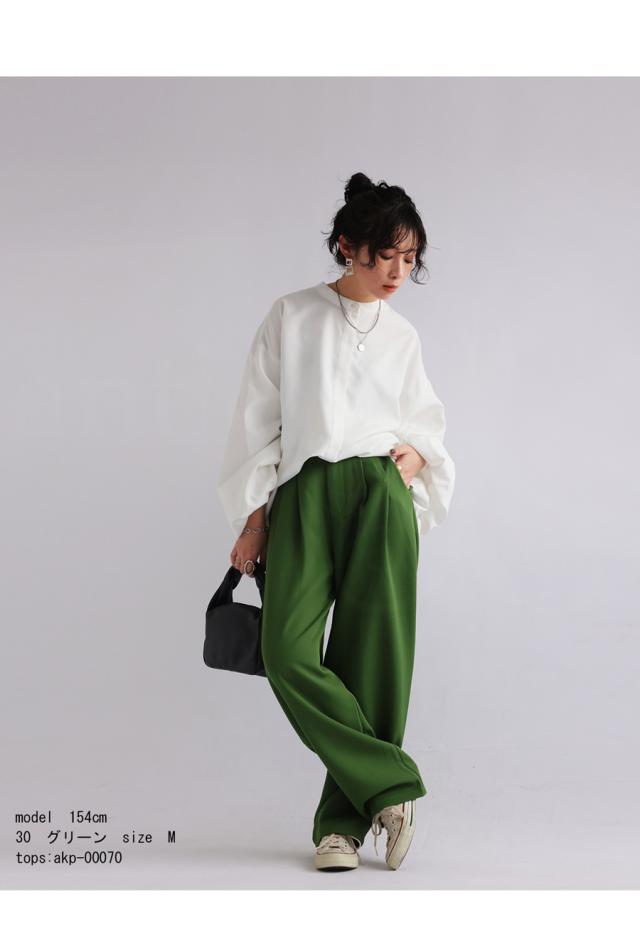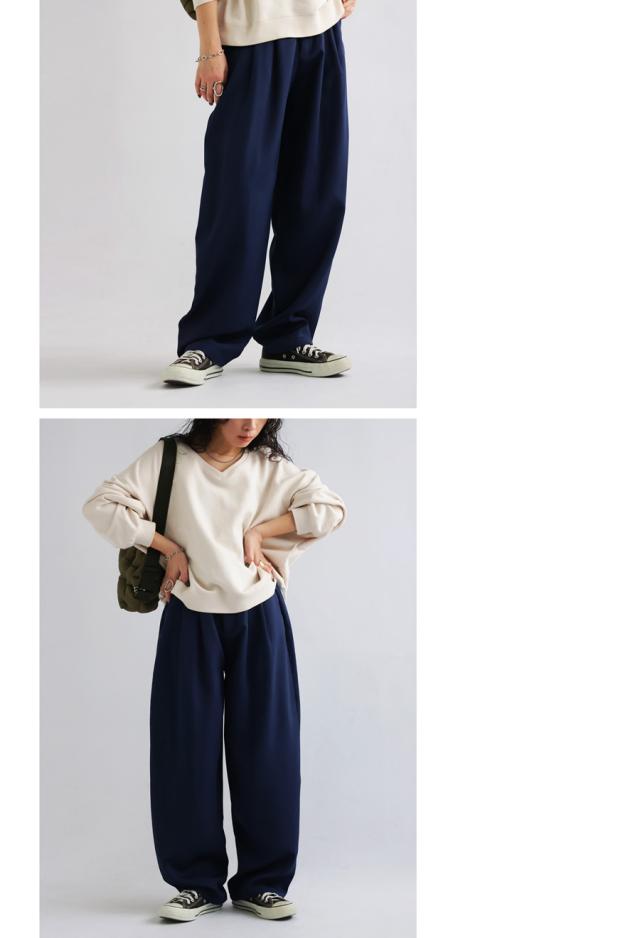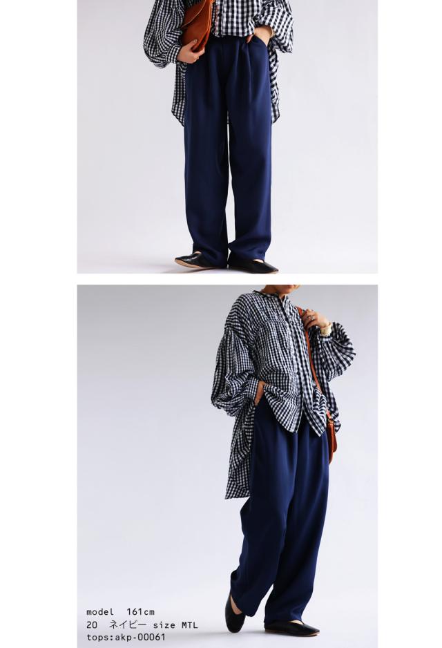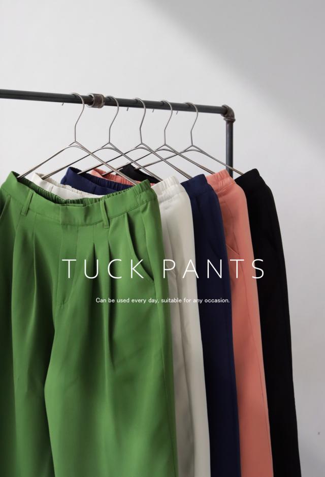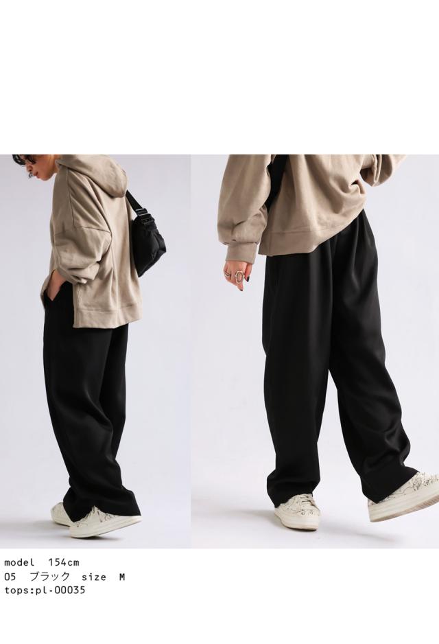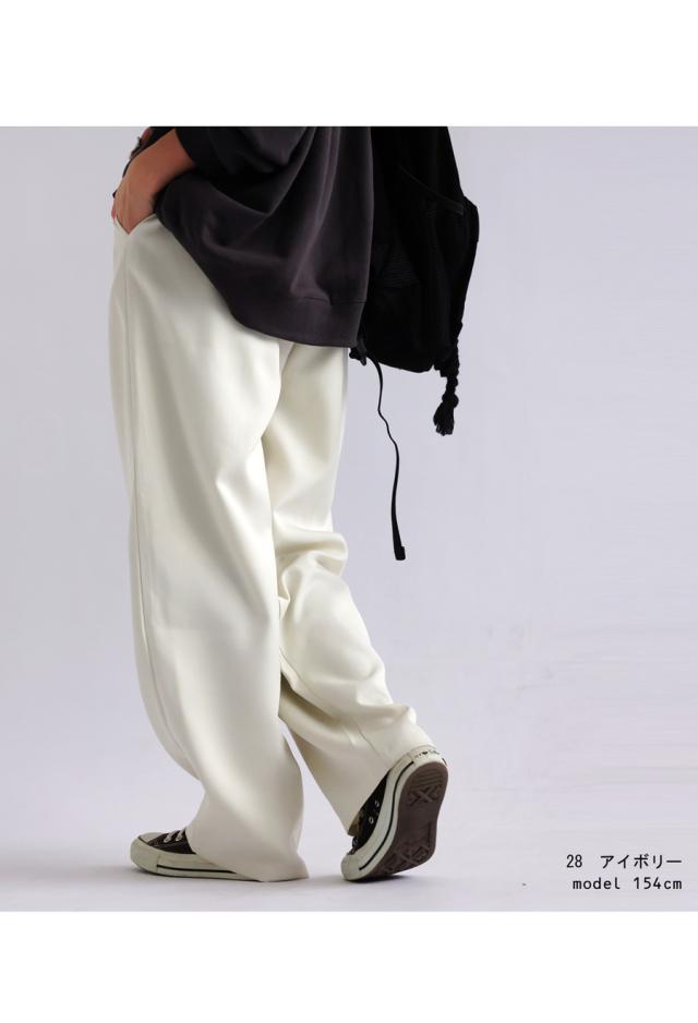 ay-00051 無地 シンプル きれいめ 高級感 上品 タックパンツ タック テーパード 長ズボン スラックス ゆったり 伸縮 ストレッチ 前フラット 後ろゴム 美脚 通勤 オフィス