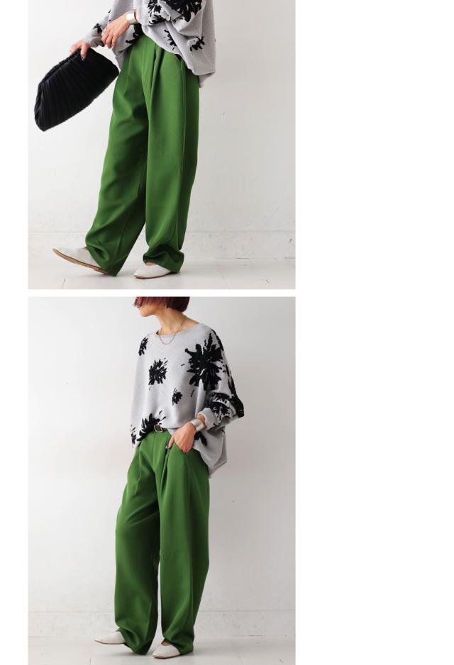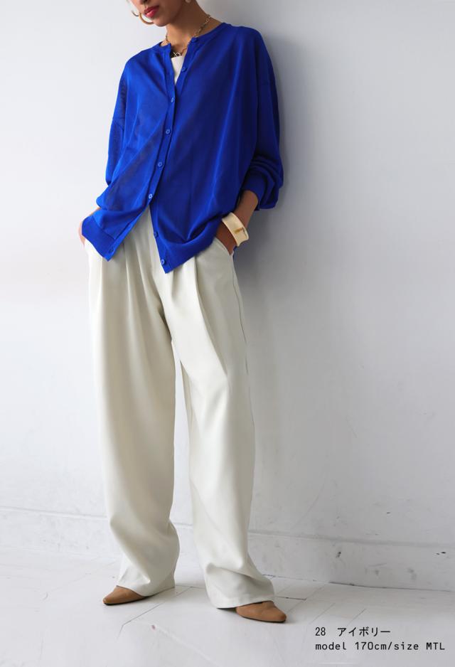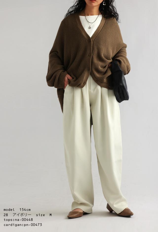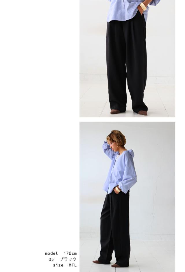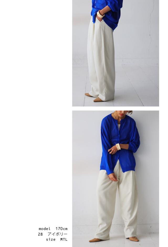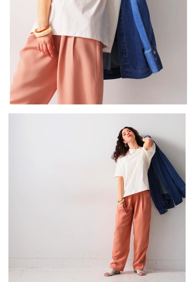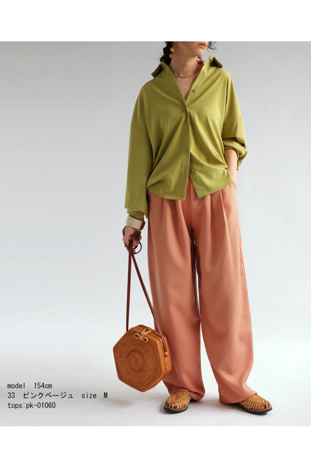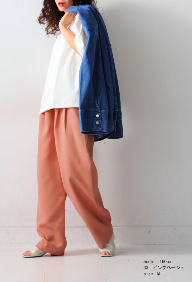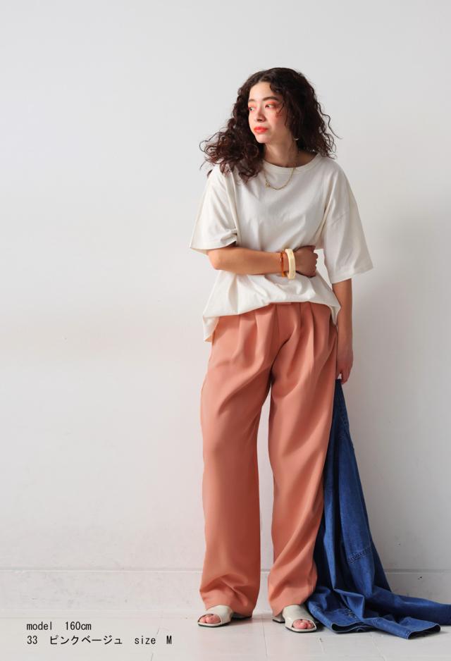 ay-00051 無地 シンプル きれいめ 高級感 上品 タックパンツ タック テーパード 長ズボン スラックス ゆったり 伸縮 ストレッチ 前フラット 後ろゴム 美脚 通勤 オフィス