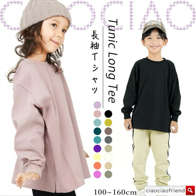 ロングTシャツ 綿100% 子供服 キッズ 長袖Tシャツ 男の子 女の子 ロンT トップス 長袖 オーバーサイズ ビックシルエット 無地 シンプル 通園 通学 100 110 120 130 140 150 160
