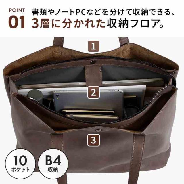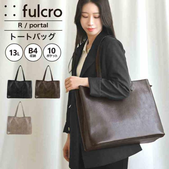 トートバッグ fulcro フルクロ FCA-1004 レディース メンズ 仕切り付き 13L B4 A4 大容量 軽量 撥水 ファスナー付き ポケット多い 肩掛け 合皮 大きい 自立 ノートパソコンが入る ビジネスバッグ 鞄 カバン おしゃれ シンプル ブラック ブラウン ベージュ 通勤 仕事用