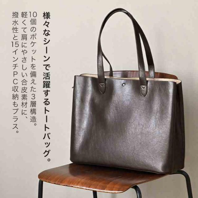 ビジネスにも普段使いにも対応するトートバッグ。