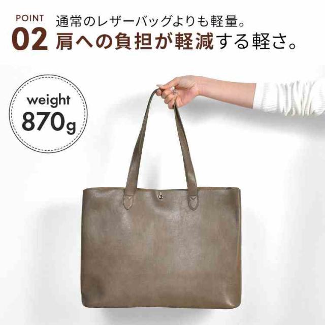 レザー調の上品なデザインながら軽量で、肩への負担を軽減。