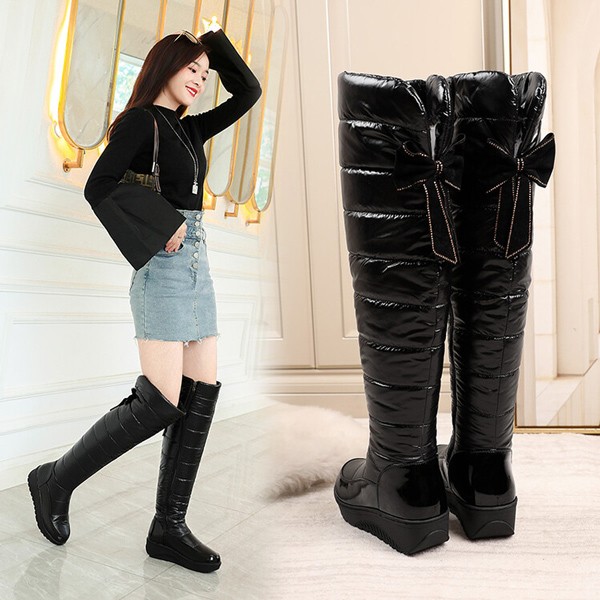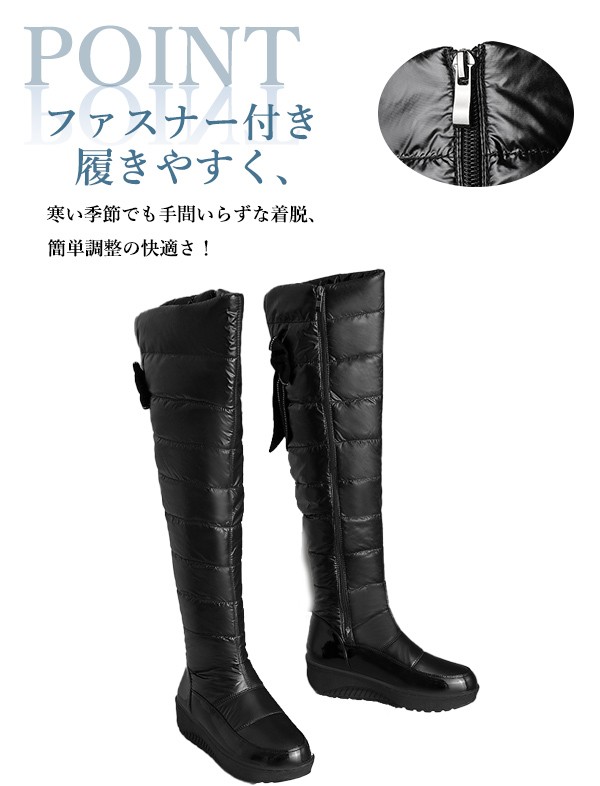 【商品名】スノーブーツ ロングブーツ ウインターブーツ リボン レディース ウェッジソール ローヒール サイドジップ 裏地ボア 中綿 防水 撥水 防寒 通勤 通学 雪靴 大きいサイズ 小さいサイズ ブラック 防滑 防寒 22.5 23.0 23.5 24.0 24.5 25.0 25.5 26.0 26.5 27.0 ei036l9