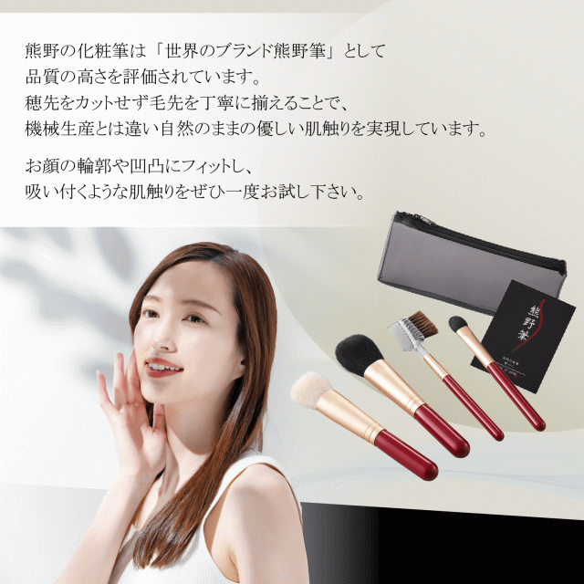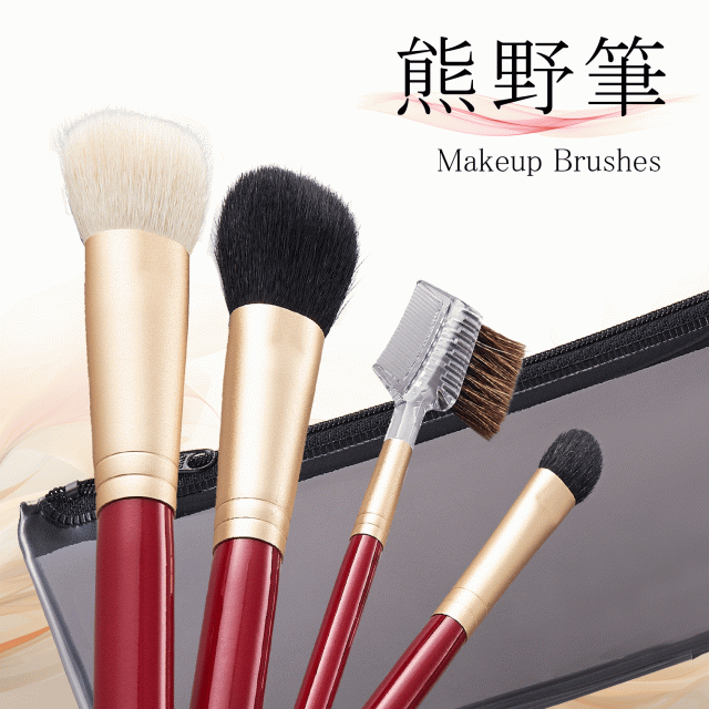 熊野化粧筆セット リキッドブラシ チークブラシ ブラシ&コーム アイシャドウブラシ ブラシ収納ポーチ メイクブラシ4本セット 熊野筆 メイクアップ コスメ 美容 メイク ファンデーション チーク アイシャドウ メイクブラシセット 化粧品